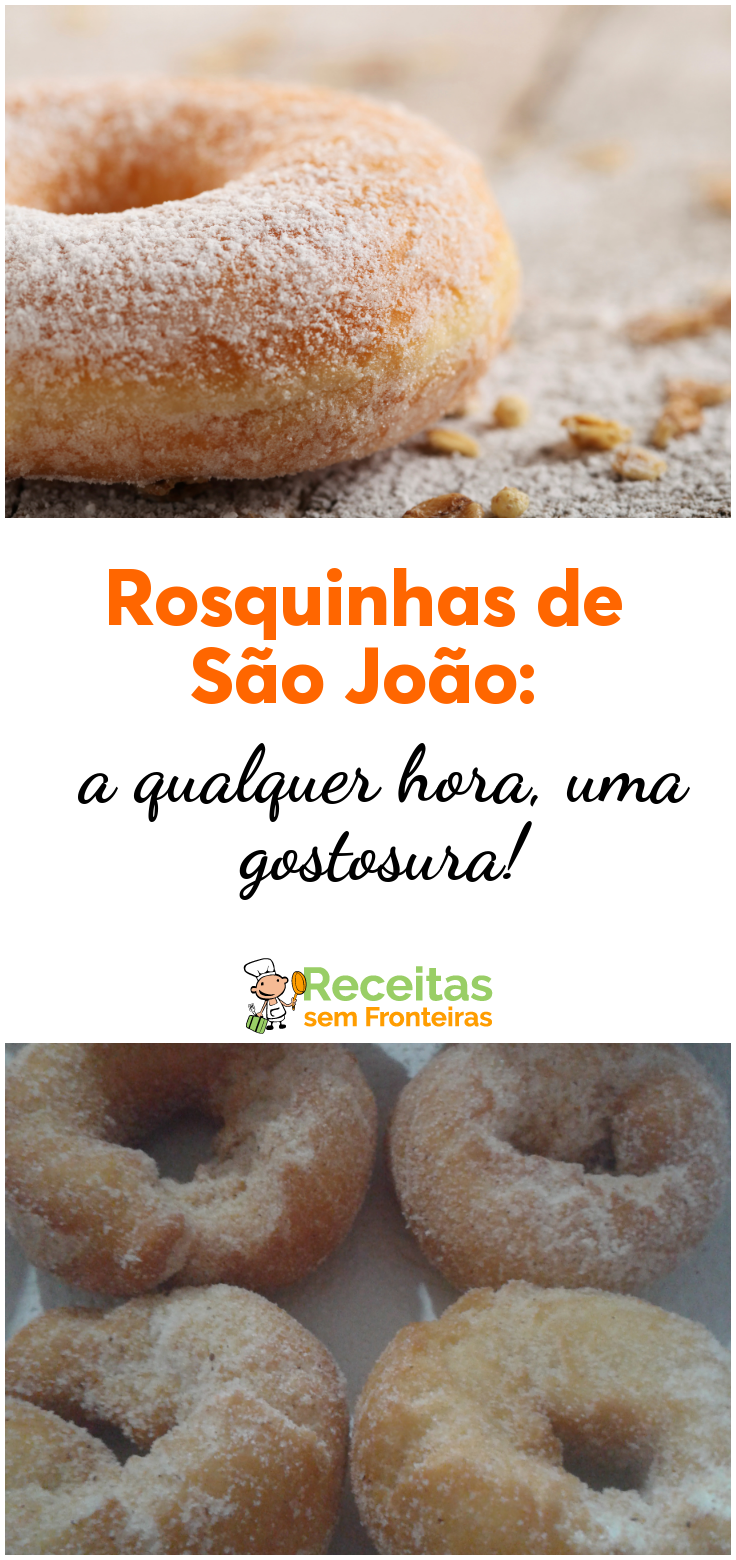 Essas rosquinhas de São João podem até parecer donuts ou biscoitos fritos, mas não são! Elas são feitas com leite condensado e levam um toque de cachaça na massa que faz toda a diferença! Eu não perderia por nada!