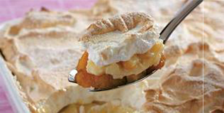 MONTAGEM: RETIRE A MASSA DO FORNO. ESPALHE O CREME, AS BANANAS COZIDAS NA CALDA E O SUSPIRO. LEVE OUTRA VEZ NO FORNO E DEIXE CORAR