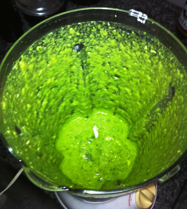 Coloque um pouco do azeite e ligue o modo “pulsar” do liquidificador. Vá adicionando aos poucos o azeite até que a mistura comece a ficar pastosa e, então, ligue na velocidade um.