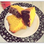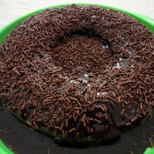 Depois de assado retire do forno e ainda quente molhe todo o bolo com a calda furando com um garfo.