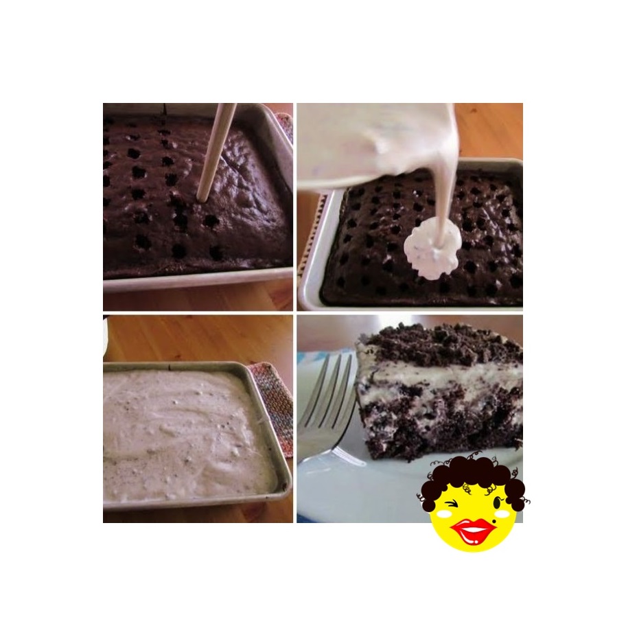 Despeje a mistura do pudim sobre o bolo quente, espalhe o creme do pudim com uma colher e empurre suavemente para baixo sobre os furos.