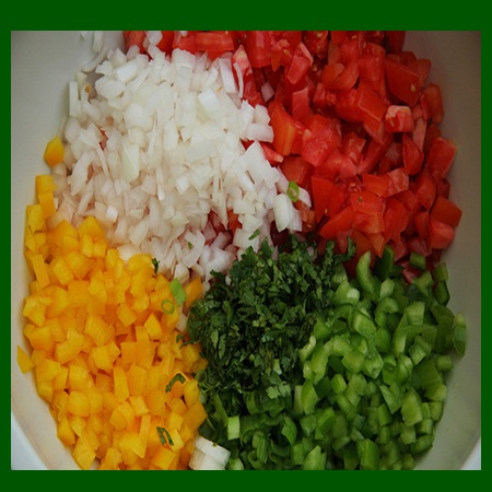 Corte os tomates em pequenos cubos, corte a cebola em pedaços pequenos,corte o tempero verde bem batidinho, acrescente o sal e por último a colher de açúcar.