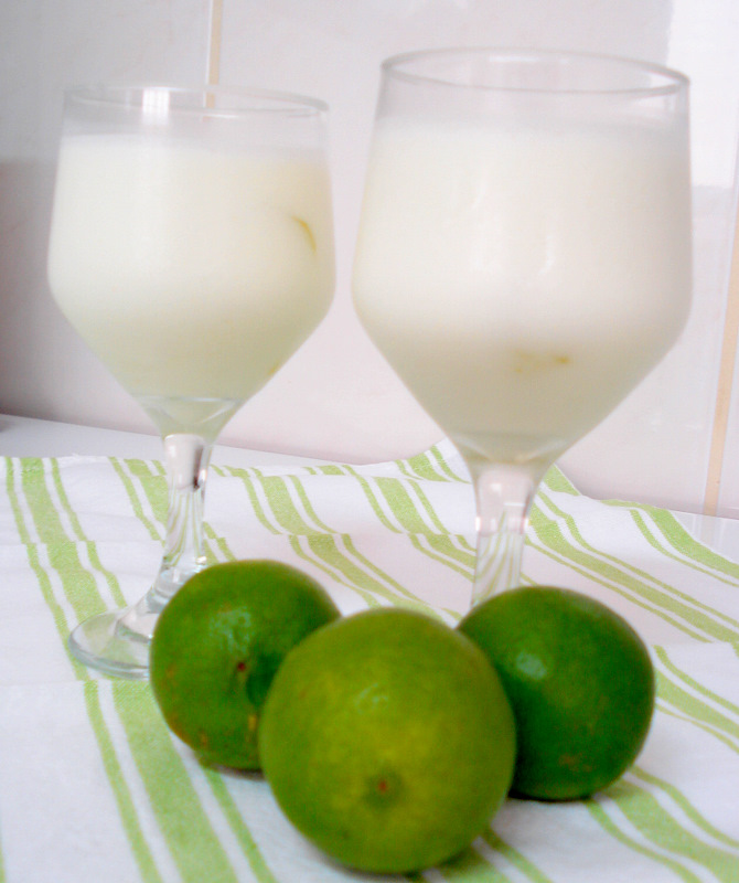 Bater todos os ingredientes no liquidificador, reservando o gelo.