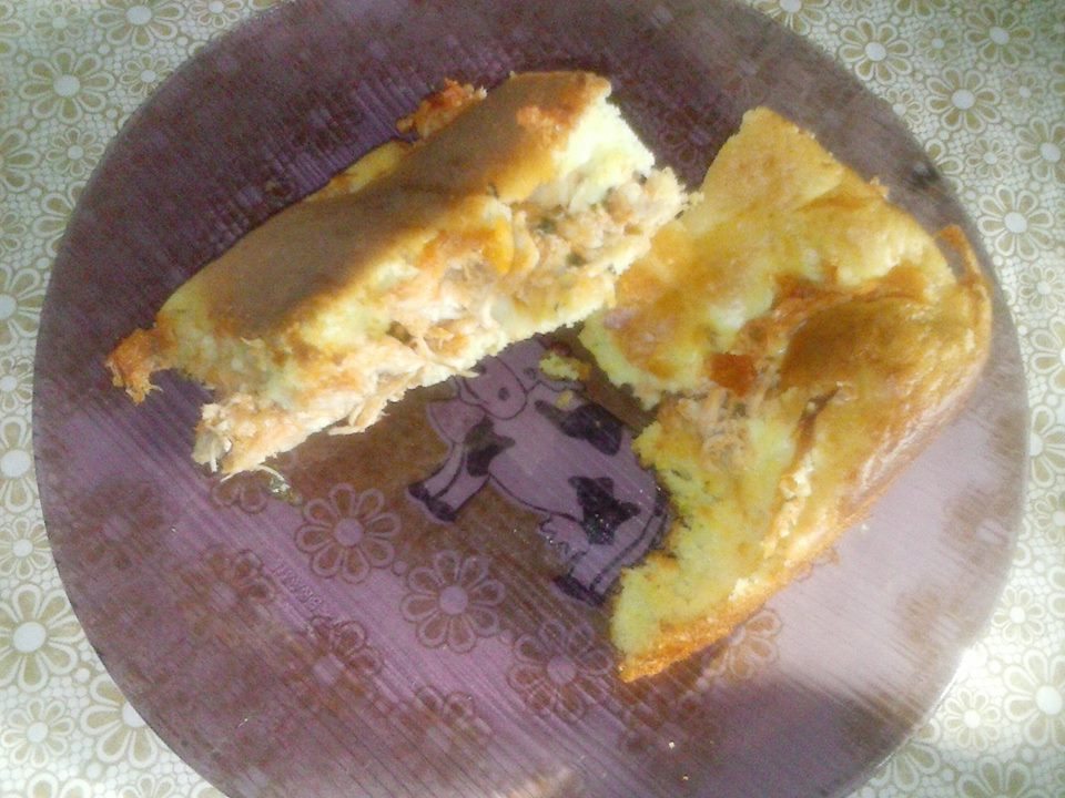 Coloque em uma forma retangular metade da massa, acrescente o recheio e coloque a outra metade, leve ao forno por 40 min.