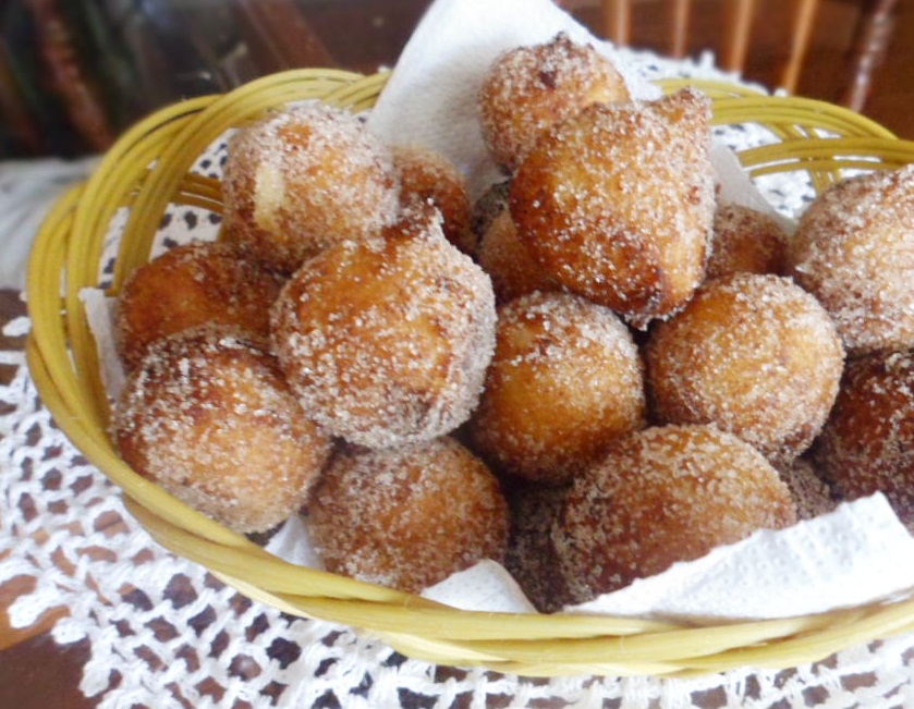 Deixe escorrer no papel absorvente, passe os bolinhos no açúcar com eles ainda quentinhos e sirva com café ou sua bebida preferida.