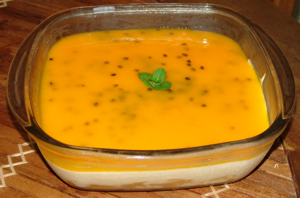- a mesma medida de suco de maracujá (só a polpa, batida, sem água e peneirada)