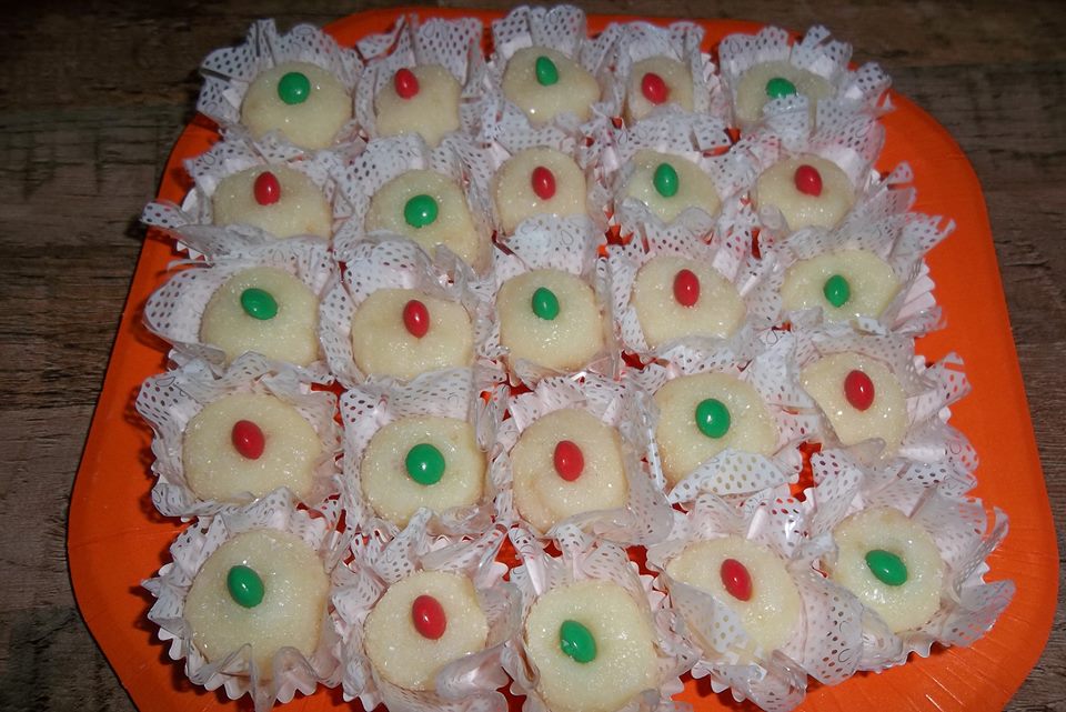 Com as mãos úmidas, usando como medida uma colher de sobremesa, faça bolinhas e passe no açúcar cristal ou coco ralado.