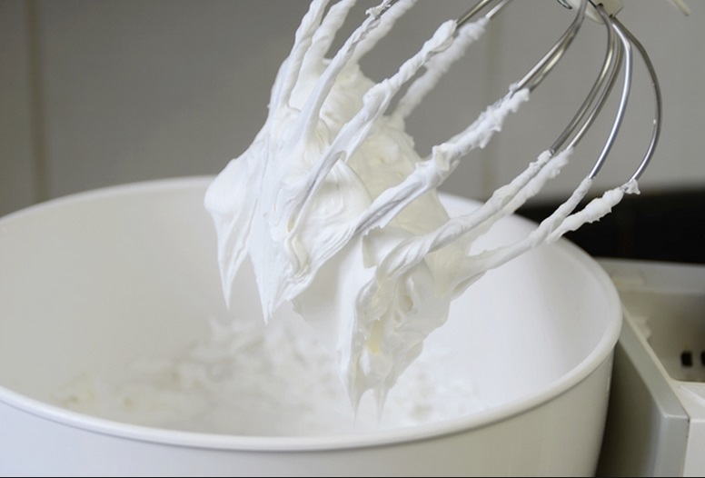 Coloque a mistura aquecida na batedeira e bata em alta velocidade, juntamente com a essência de sua preferência, até ficar bem firme e cremosa.