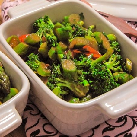 Couve-flor, brócolis, cenoura e abobrinha refogados, com caldo de Legumes