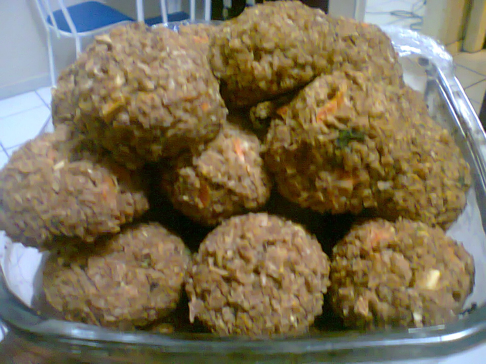 Dicas: o ideal é que assim que se faça os bolinhos, já os frite, pois a tendência deles é quebrar, caso leve muito tempo em repouso. Mas caso aconteça a quebra, basta moldar novamente com as mãos e levar à frigideira para fritar. Talvez seja necessário acrescentar mais farinha, a medida em que se vai retirando pedaços da mistura para fazer os bolinhos, mas nunca usei mais de 2 xícaras de farinha para fazer essa quantidade de bolinhos. O repolho é opcional, mas dá um efeito bem crocante aos bolinhos.