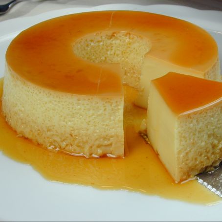 Despeje em uma forma caramelada e leve ao forno quente em banho maria por 1 hora e 15 minutos.