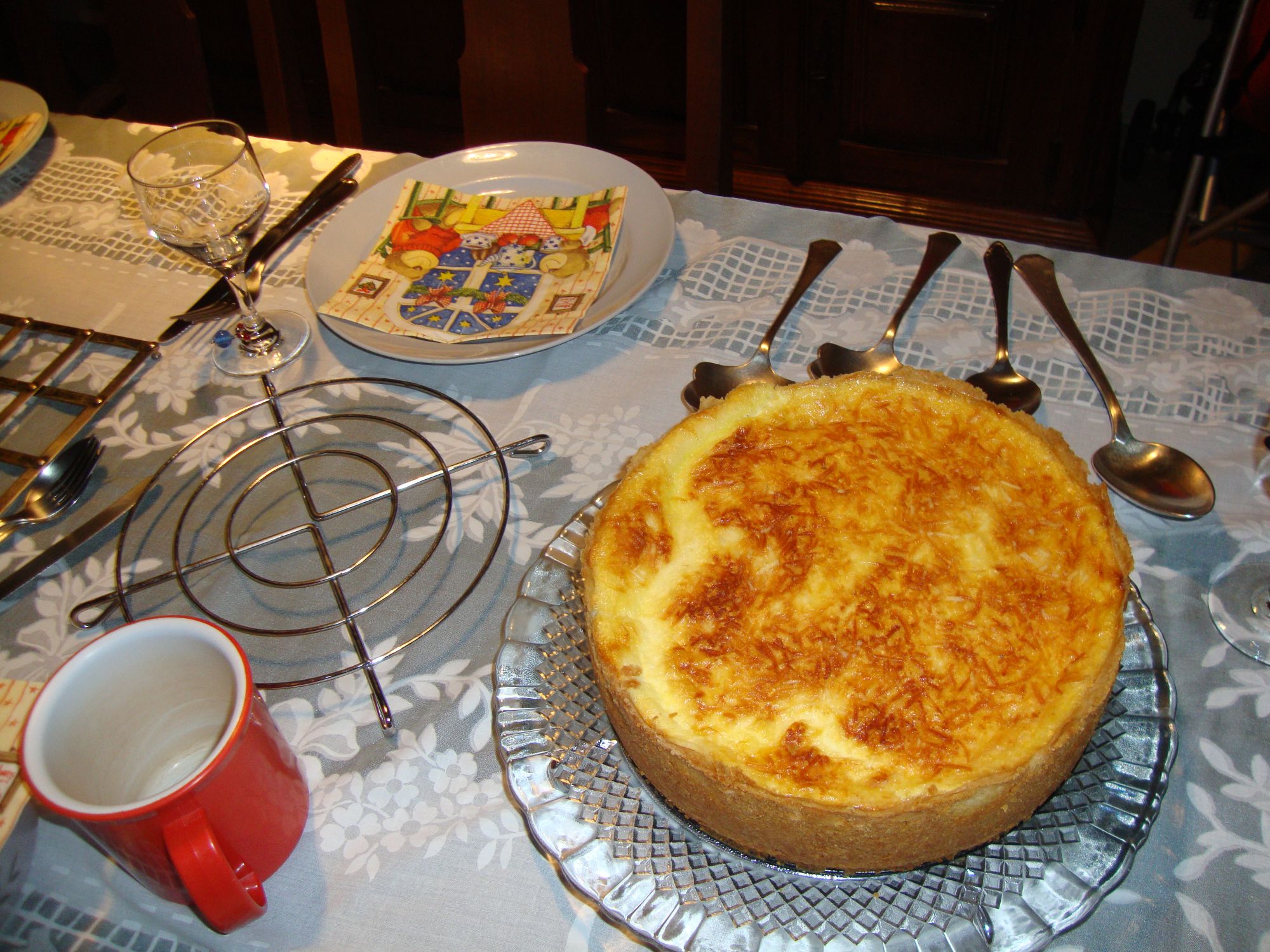 Com o restante da manteiga, faça pedacinhos e disponha-os por cima da cobertura para dourar.