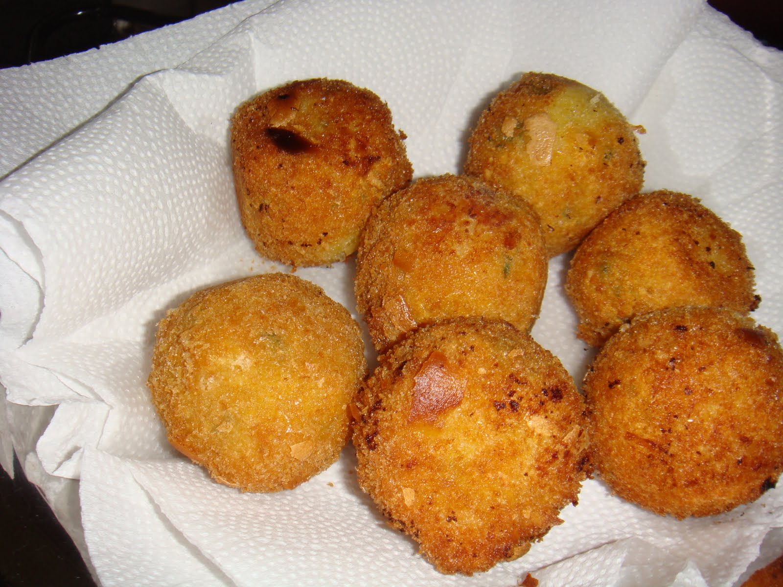 Aqueça uma frigideira com óleo e frite os bolinhos até dourar.