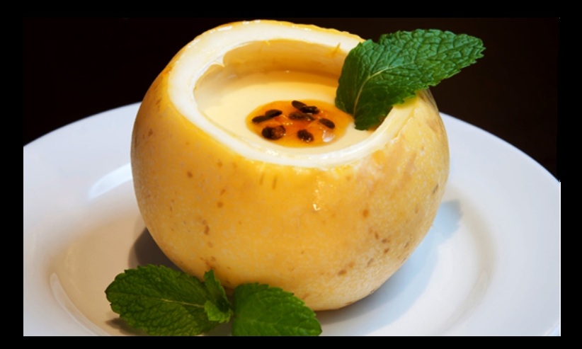 Decorar com sementes de maracujá e folhas de hortelã, agregar sobre uma taça decorada com chocolate, antes de ir a geladeira.