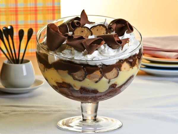 Forre o fundo de uma forma refratária grande com bis picado, faça uma camada com o creme e adicione bis, chocolate quebrado, logo venha com o restante do creme.