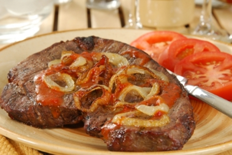 Em uma panela de tamanho médio colocar o óleo, depois seguir a ordem : Bife, cebola, pimentão, tomate e por último colocar a xícara de água com o caldo e não mexer. Deixe cozinhar.