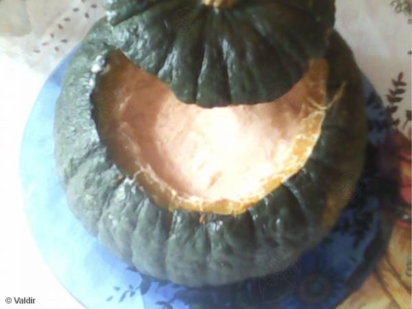 Ou faça o cozimento no fogão, em uma panela grande com água, ou cozinhe no microondas com a abertura da abóbora para baixo, sobre um prato refratário, por cerca de 20 minutos na potência alta