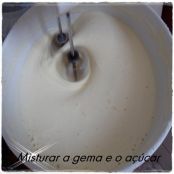 *Acrescente a gema (peneiradas) e o açúcar aos poucos, e bata até obter uma massa lisa e cremosa...