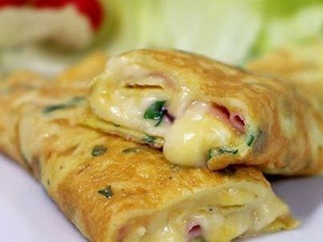 Recheio opção 04: Enrole o queijo mussarela na goiabada, envolva na panqueca e coloque no forno para assar.