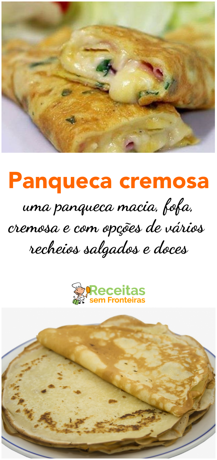 OBS: a panqueca salgado pode ser salpicada com queijo parmesão ralado e as panquecas doces pode ser salpicada com canela e açúcar ou granulado.
