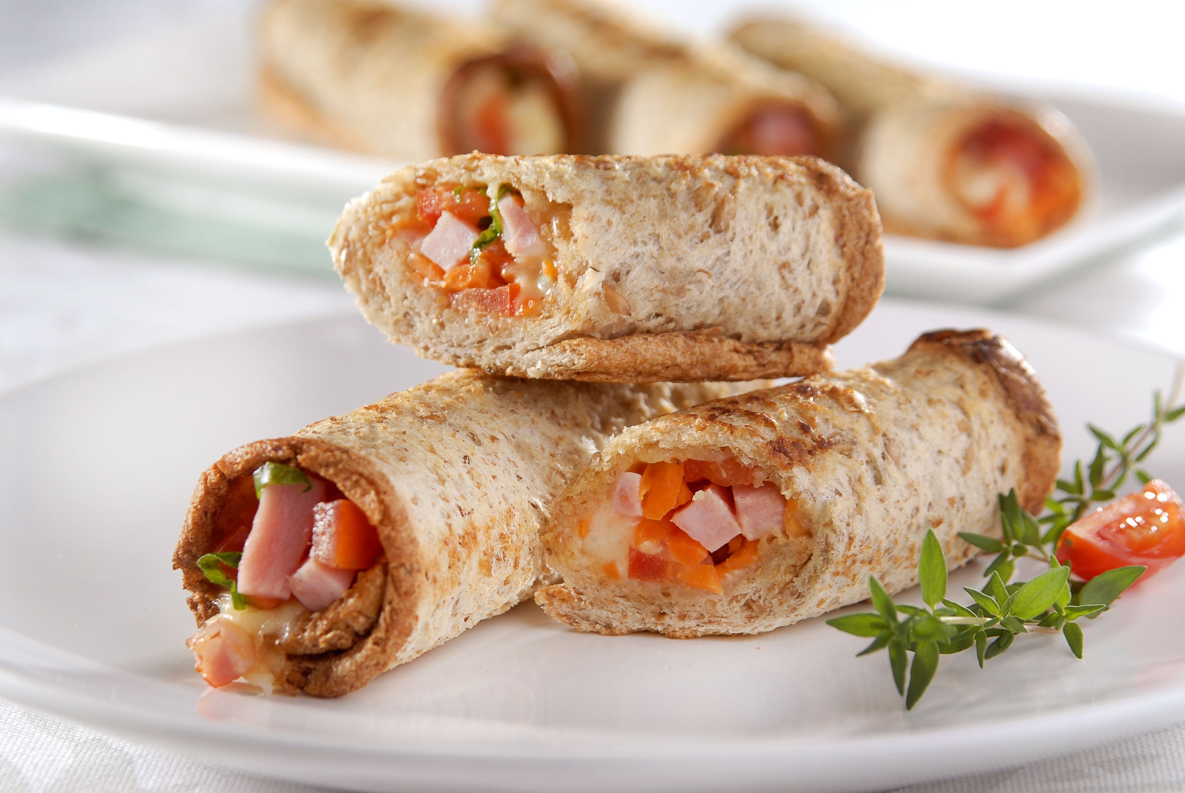 Para sair da rotina e elaborar um lanche da tarde diferente, a Wickbold ensina a preparar um enroladinho irresistível, feito com pão integral, queijo mussarela, cenoura, presunto, tomate e milho.