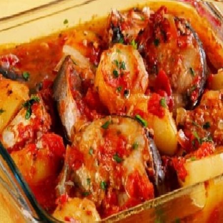 Tempere o peixe com o limão, o alho e sal e pimenta a gosto, tampe e deixe tomar gosto na geladeira, por 30 minutos. Em uma panela, refogue a cebola com o óleo, junte o tomate, o extrato e a água, misture bem e ferva por 5 minutos, com a panela tampada. Tempere a gosto com sal e pimenta e retire do fogo. Em um refratário, coloque as batatas intercaladas com o peixe, em uma só camada. Regue com o molho e o azeite e leve ao forno, preaquecido, em temperatura média por cerca de 40 minutos ou até o peixe cozinhar. Retire do forno e polvilhe a salsa antes de servir.