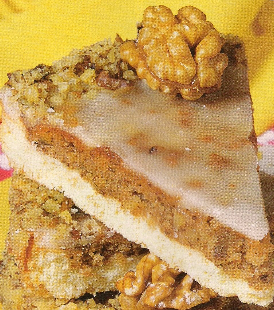 2. Espalhe sobre o bolo e polvilhe as nozes