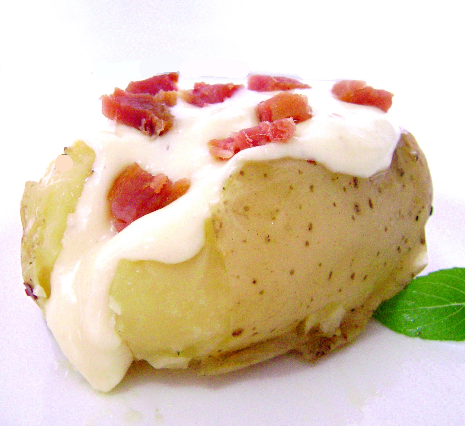 1. Cozinhe as batatas no micro-ondas por 15 minutos, ou no forno convencional (envolvida com papel alumínio) por 40 minutos