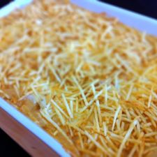 Em uma panela, aqueça a manteiga e refogue a cebola . Adicione a farinha de trigo e mexa rapidamente, deixando dourar ligeiramente.