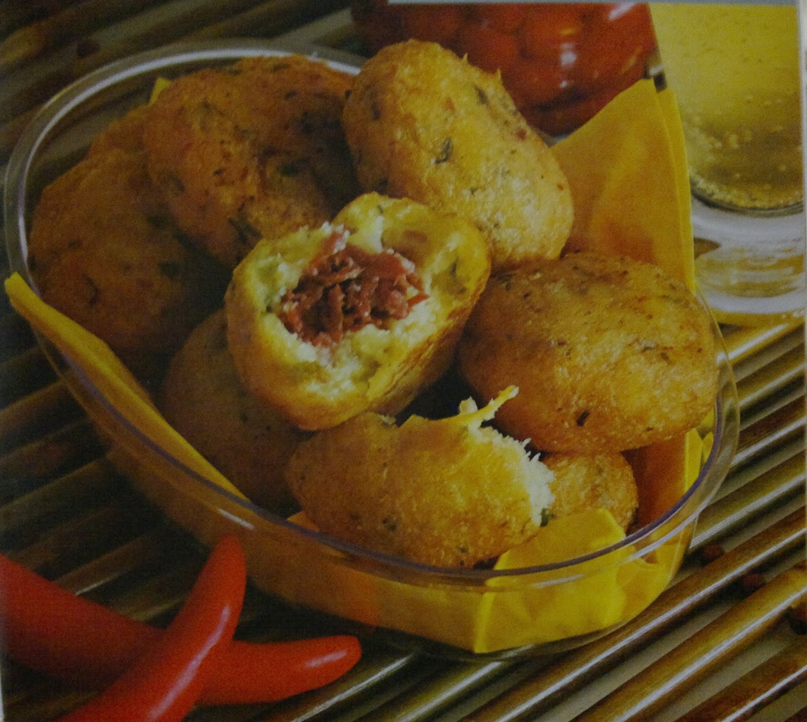 Com auxilio de um potinho de água, enrole bolinhas e passe no ovo e na farinha