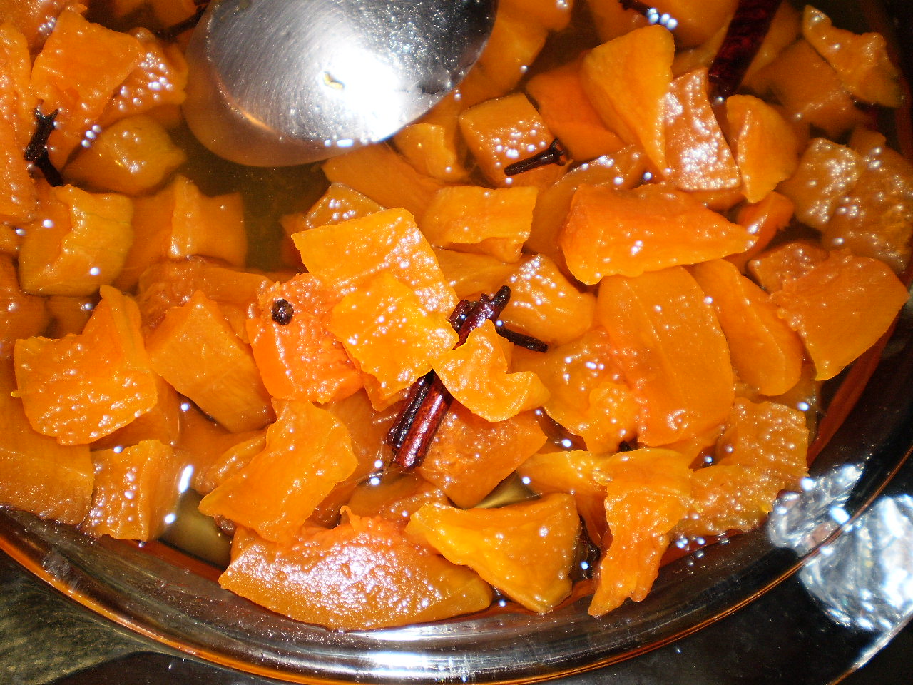 Os mamões estavam com a casca verde e a polpa levemente amarelada.Pode ser feito com mamão verde ou maduro.Substitui a cal por fermento em pó e deu muito certo.