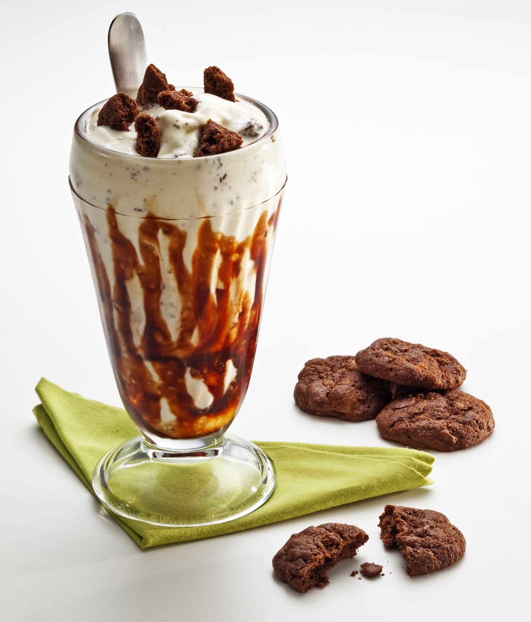2. Espalhe um pouco de cobertura em uma taça própria para milk shake