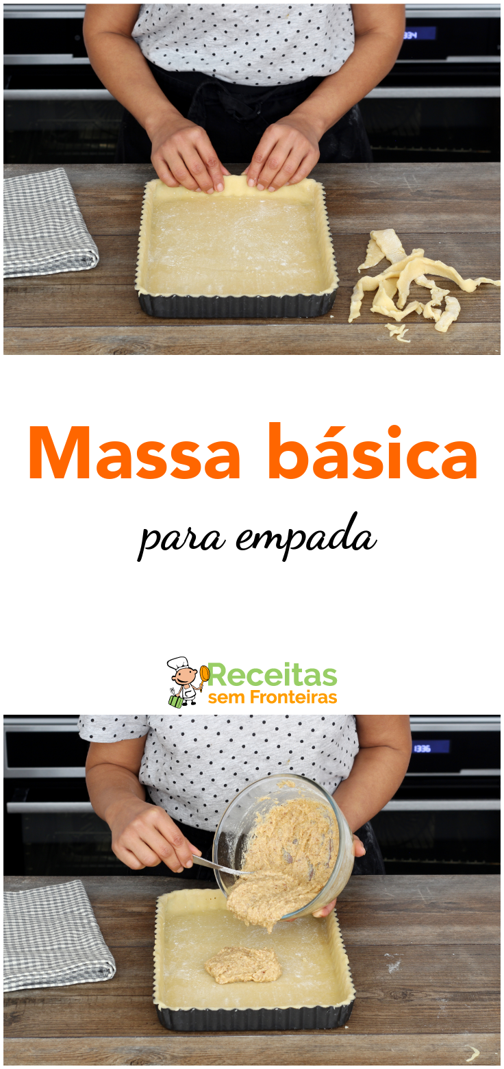 A parte da massa que forra a forma pode ser aberta e acomodada na forma com as mãos e pontas dos dedos, a parte que cobre (caso queira cobrir) tem que ser aberta entre sacos plásticos com um rolo.