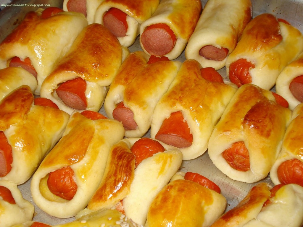 Cozinhe a salsicha em molho de tomate antes de coloca-la no enroladinho, da um sabor especial.