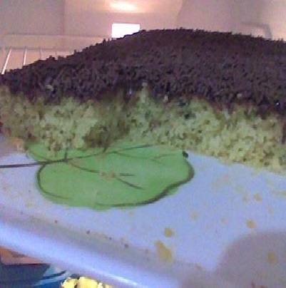 Desligar o fogo e cobrir o bolo imediatamente porque a cobertura endurece logo