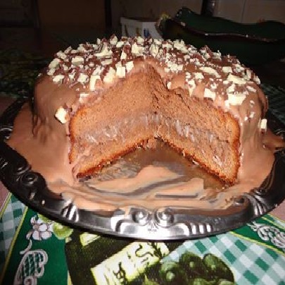 Misture o leite condensado e o coco ralado e coloque no meio do bolo