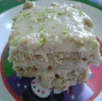 Em um refratário retangular, alterne camadas de bolachas umedecidas no leite e de creme, sendo a primeira a última camadas de creme