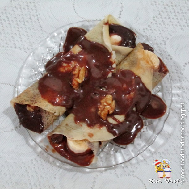 - Primeiro prepare a massa da panqueca e leve para cozinhar em uma frigideira revestida, a massa deve ser bem fina. Repita a operação até terminar a massa.