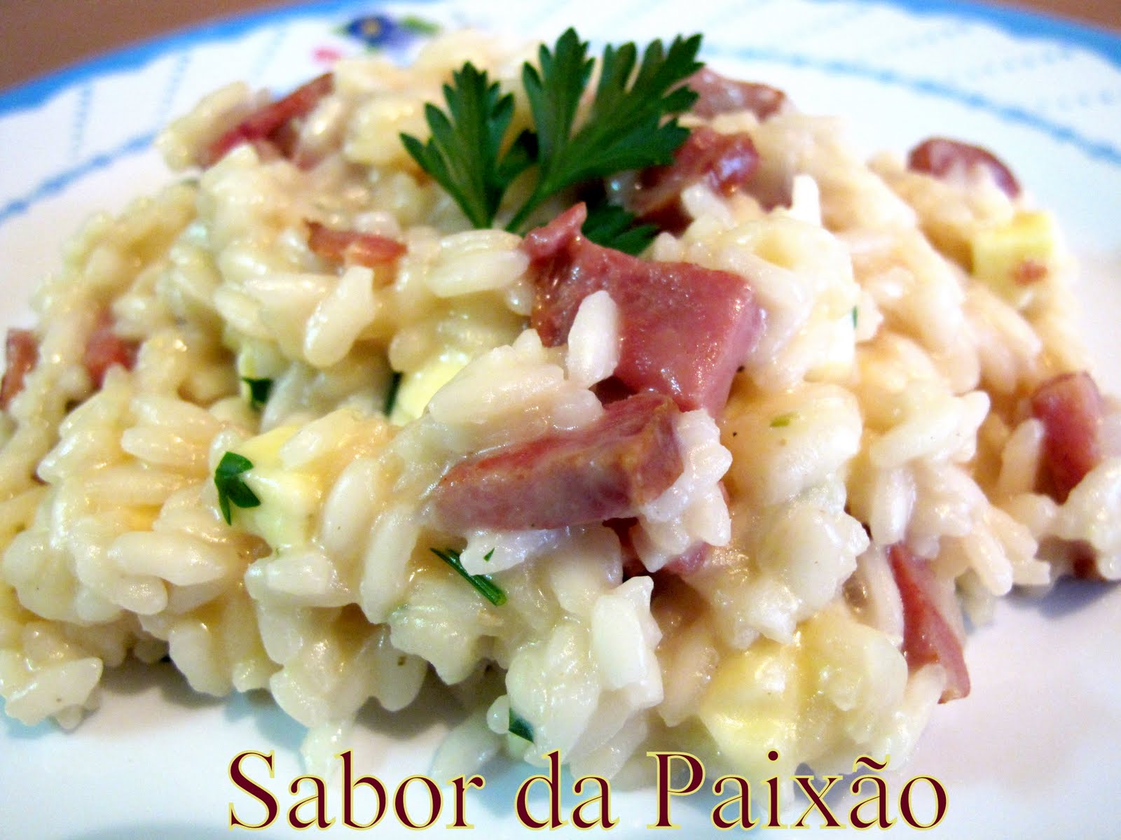 Se o seu caldo de legumes for em cubinho ferva a água e os dissolva, eu usei 2 cubinhos. Aqueça uma panela, e adicione o azeite de oliva e a manteiga para derreter. Refogue a cebola, adicione o arroz para risoto e mexa bem para que todos os grãos sejam envolvidos com a manteiga. Refogue por cerca de 30 a 40 segundos, e adicione o vinho branco. Quando um 1/3 do vinho evaporar, vá colocando o caldo de xícara em xícara, assim vc não coloca água de mais. A partir de agora, devemos mexer o risoto constantemente para que a amilase dos grãos seja liberada, garantindo a principal característica deste prato, que é sua cremosidade. Assim que o risoto estiver al dente, adicione então, a linguiça, mexa um pouco e agora adicione a pera e o queijo para que eles sejam incorporados no risoto. Se for necessário adicione apenas mais uma concha do caldo para auxiliar neste passo, salpique salsinha a gosto, sirva quentinho acompanhado de pimenta biquinho, hum gente, ficou uma delícia eu recebi muito elogios e to ficando muito metida em fazer risoto rsrs há quanto a pera foi o tchan do risoto.
