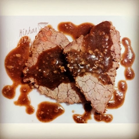 Na metade deste tempo, regue bem a carne com o líquido da assadeira e cubra novamente com o papel alumínio, retirando-o apenas nos últimos 10 minutos.