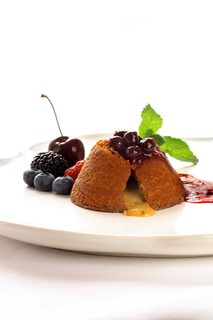 Disponha o creme dentro das formas, e adicione uma framboesa congelada em cada uma. Leve tudo ao forno durante 5 a 7 minutos.