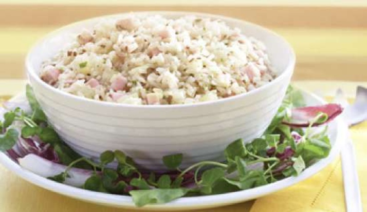 Faça o Arroz com tempero e o azeite. Após o arroz esfriar completamente, coloque-o em uma tijela e misture com a hortelã , misture o abacaxi e as sementes de linhaça, por ultimo misture o peito de peru, misture tudo e sirva.