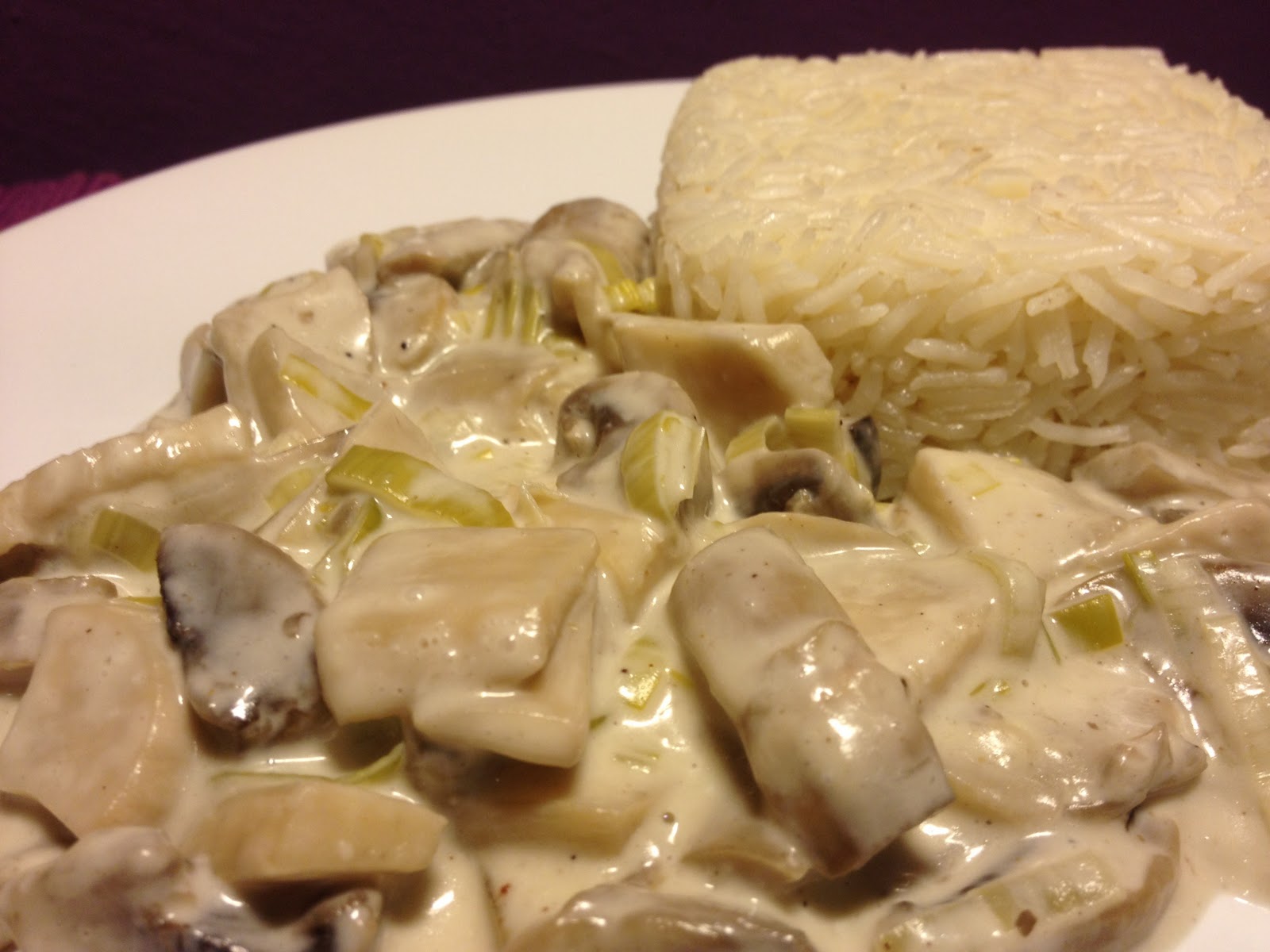 frite os bifinhos normalmente até dourar, depois coloque a cebola, coloque água e deixe cozinhar por uns 20 minutos e os cogumelos, mexa bem e então coloque o creme de leite e vá mexendo até virar uma mistura homogênea.