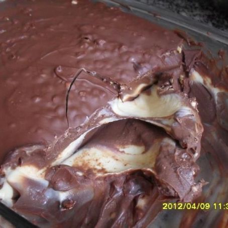 Derreta o chocolate ao leite e espalhe sobre o creme. Leve à geladeira por 2 horas antes de servir.