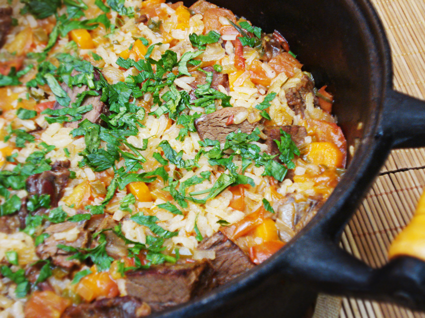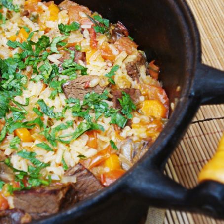 Coloque o arroz para dourar com o alho, o azeite e a cebola depois de torrado coloque os demais ingredientes e acrescente água de forma que cubra o arroz e deixe cozinhar.