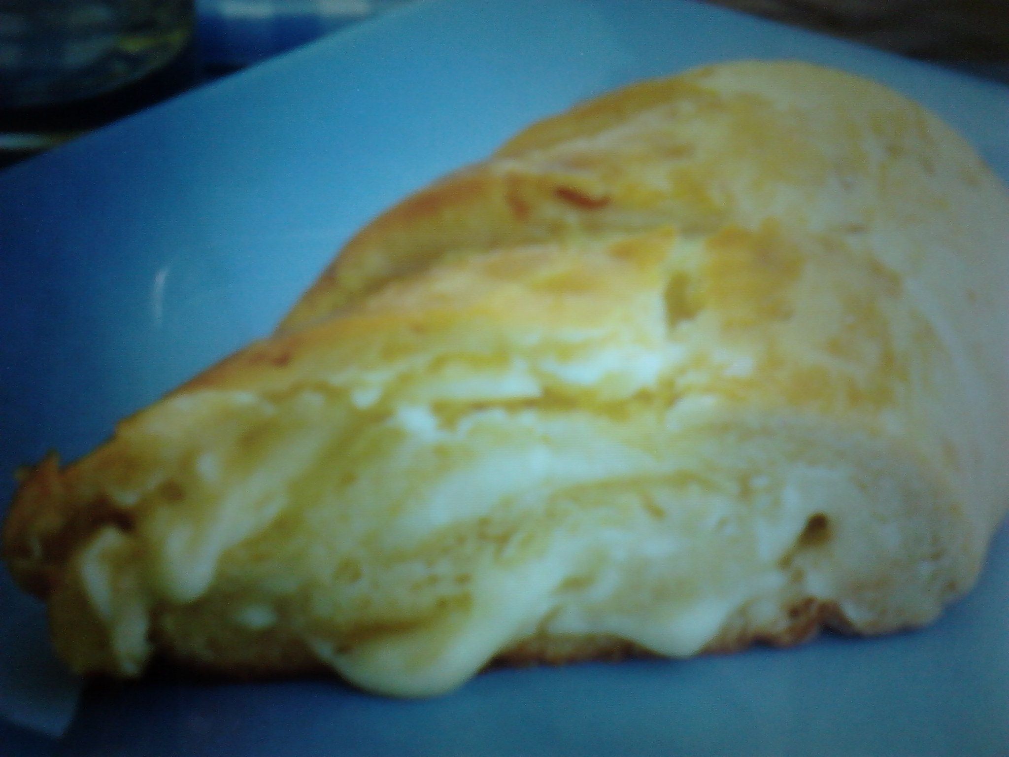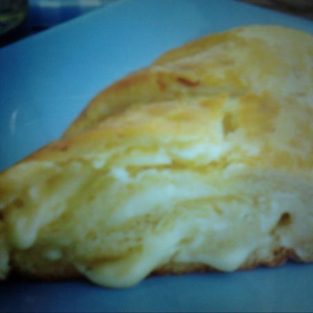 Enrole como rocambole e coloque em uma assadeira, um ao lado do outro, pincele com a gema e com uma faca afiada faça cortes na massa como se fosse fatiar o pão, porém sem cortar por inteiro.