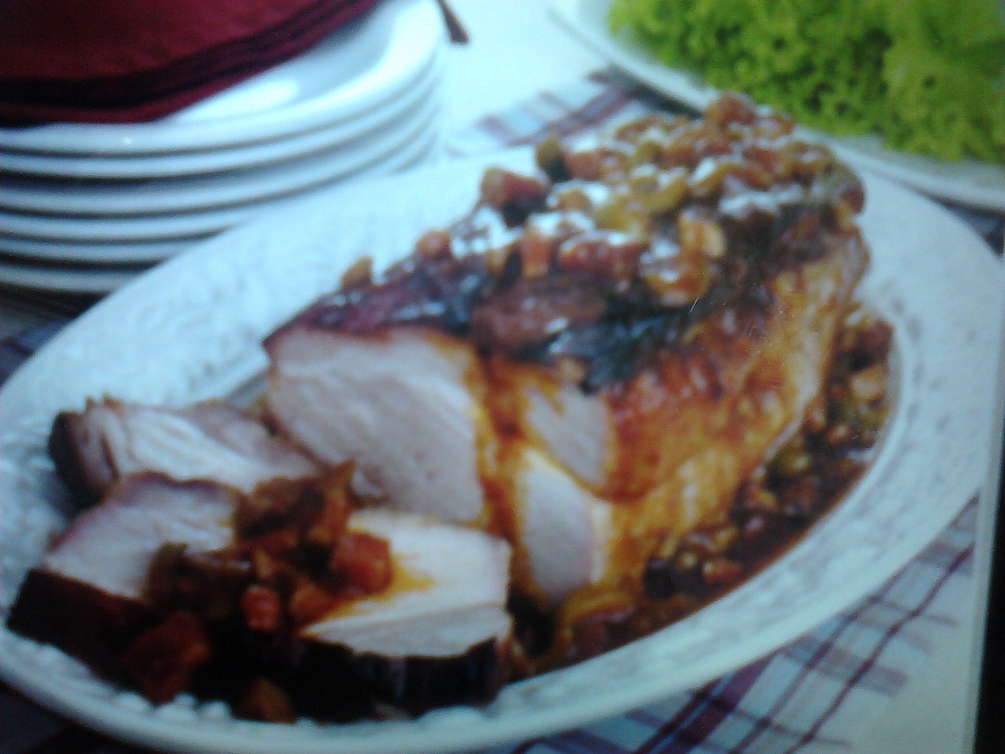 Retirar o pernil do forno, colocar em um prato de apresentação e servir com o molho.