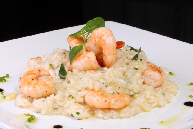 Prepare o arroz: refogue a cebola no óleo, junte o arroz e mexa por alguns minutos. Acrescente a água e tempere com SABOR A MI® a gosto. Deixe cozinhar, com a panela semi-tampada, até que a água evapore e o arroz esteja macio. Coloque o arroz cozido na frigideira reservada, adicione o cheiro-verde restante e misture bem até envolve-lo com a manteiga que restou. Distribua ao redor dos camarões e sirva imediatamente.