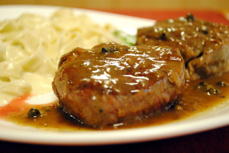 Numa travessa acomode os medalhõe e coloque por cima o molho
