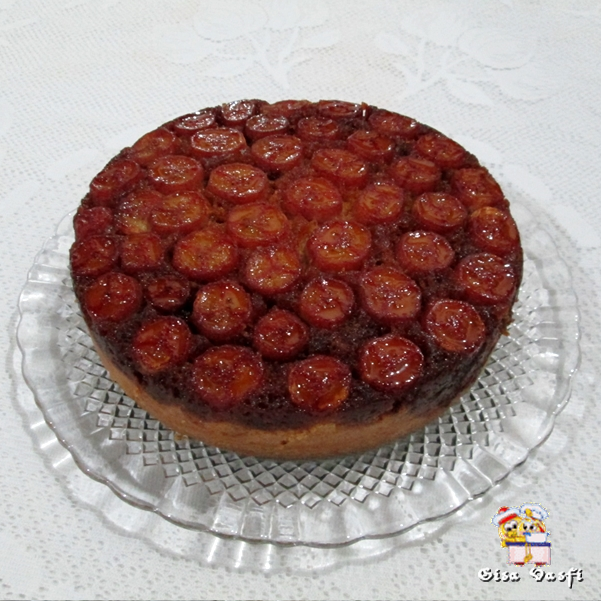 Junte bem as rodelas de banana para não criar espaços vazios depois de assado o bolo.